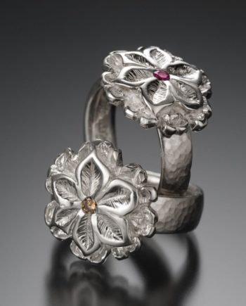 Handcarved Poinsettia Ring with 2mm Cognac Diamond or Ruby